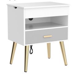 1PC 35'' Nightstand with Reversible Lift Top, Large Night Stand with Lights, Tall Bedside Table with Charging, White$45Anaheim, CA