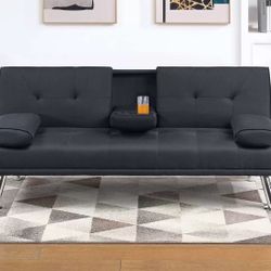 Brand New Fabric Black Sofa Bed With Cup Holder Futon Faux Black Linen$260Hollywood, CA
