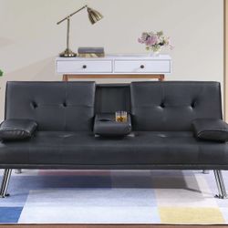 Brand New Black Modern Faux Leather Futon Click Clack Sofa Bed With Cup Holders And Pillow Arm Rest $250Hollywood, CA