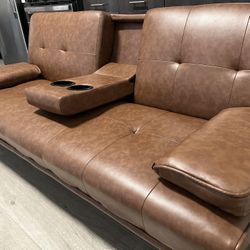 Brand New Brown Leather Futon Sofa Sleeper w Cup Holders $429Los Angeles, CA