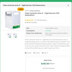 Titan Controls Ares 8 - Eight Burner NG CO2 Generator - 21.6 CUFT/HR$130El Monte, CA