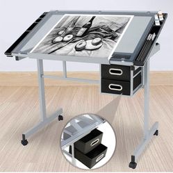 Tempered Glass Top Adjustable Drawing Desk Craft Station Drafting Table w/2 Drawers/Wheels$95Orange, CA