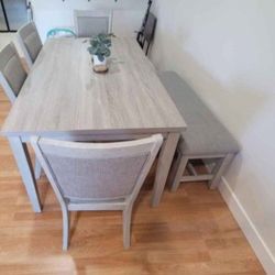 ✅️✅️ 6 pc light finish wood dining table set padded seat chairs and bench ✅️$364Bell Gardens, CA