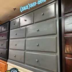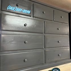 Jumbo Wide 9 Drawer Solid Wood Grey Dresser Fully Assembled- Tocador Gris $429Santa Monica, CA
