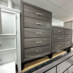 Grey Five Drawer Dresser With Rails Chest New Comoda Bonita $188Downey, CA