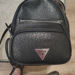 This is a Guess satchel handbag in a black logo print material. $20Norwalk, CA