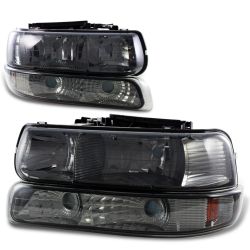 For 1999-2002 Chevy Silverado 2 Piece Smoke Housing Headlights + Bumper Lamps -(4-HL-SILV9902SA-0$60City Of Industry, CA