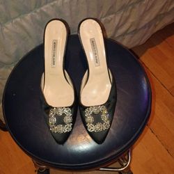 Manolo Blahnik Hangisimu 70 Embellished Satin Mules$450Pasadena, CA