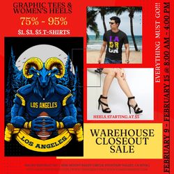 Warehouse Closeout Sale $1, $3, $5+ Graphic Tees And Women’s Heels $5+$0Fountain Valley, CA