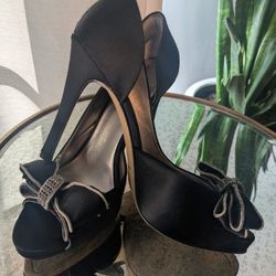 Nine West Black Satin Heels With Bows Size 7.5 Like New$20Covina, CA