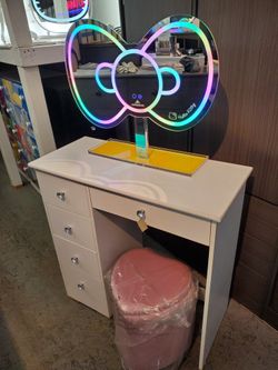 New Hello Kitty Bow LED Mirror, Hello Kitty Storage Stool & White Vanity 3 Piece Special $598South Gate, CA