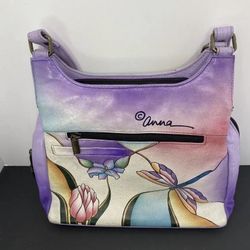 Anuschka Dragonfly Glass Painting Leather Large Hobo Shoulder Crossbody Bag$120Los Angeles, CA