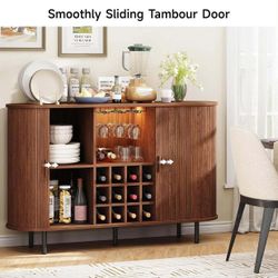 55" Wine Bar Cabinet with LED Light,Modern Liquor Whiskey Coffee Station with Wine Rack and Glass Holder, Farmhouse Buffet Sideboard with Storage for $169Downey, CA