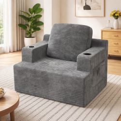 New Adult Deep Seat Chaise Lounge Sofa Chair Oversized Corduroy Cloud Boneless Single Sofa with Cup Holders ,Gray New in box SF25-0925-C4 Homall Sing$130La Mirada, CA