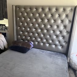 Queen Size Grey Silvery Tufted Diamond Like Headboard, And Frame$100West Covina, CA