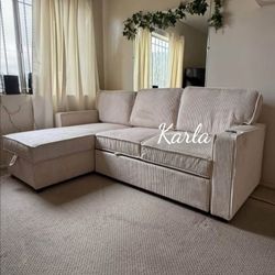 2-pc Sectional Sofa W/ Pull-out Bed & Storage Ivory Corduroy $390Glendale, CA