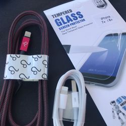 iPhone 7+/8+ Tempered Glass & 2x Charger Cables (BUNDLE ‼️)$10Bell Gardens, CA