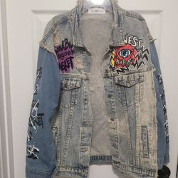 Andrea Oversized Denim Jacket Women’s Size M (Fits Like L) Happiness Print$25Huntington Park, CA