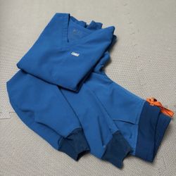 FIGS XXS one-pocket top + XXSP joggers | ALPS BLUE Scrub Set Petite $50Los Angeles, CA