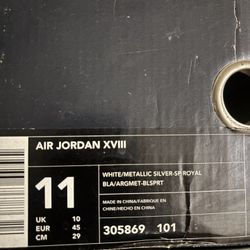Air Jordan 18 (XVIII) – White / Metallic Silver / Royal$100Anaheim, CA