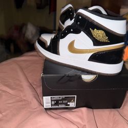 JORDAN 1 MID PATENT BLACK WHITE GOLD$130South Gate, CA