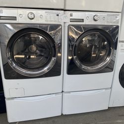 SET WASHER AND DRYER FRONT DOORS WHITE WITH PEDESTAL KENMORE $775Los Angeles, CA