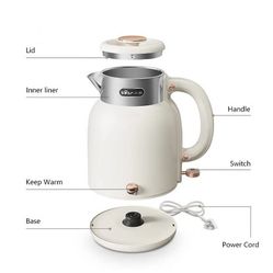 ZDH-C15C1 Electric Kettle for Coffee & Tea, Stainless Steel Hot Water Boiler with Keep Warm Function, Auto Shut-Off, BPA Free, 1.5l, White$39City Of Industry, CA