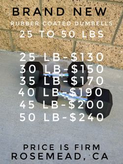 Pair of 50 lb rubber encased Hex dumbbells pounds$220Rosemead, CA