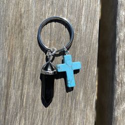 .Natural Charged Onyx & Howlite Cross Keychain (known For : Protection,Reduce Stress, remove & Block Negativity, Healer, Calm Emotions )$10Gardena, CA