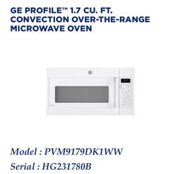 GE 1.7 CU In Over Range Microwave Convection Oven$200Santa Ana, CA
