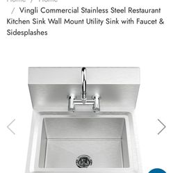 Commercial Stainless Steel Restaurant Kitchen Sink Wall Mount Utility Sink with Faucet & Sidesplashes$90Santa Ana, CA