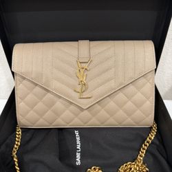 Saint Laurent - Envelope Triquilt YSL Wallet on Chain (WOC) in Grained Leather (DARK BEIGE)$1,900Rosemead, CA