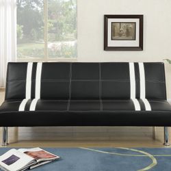 Black Leather Baseball Stiching Futon Sofa Bed!$185Santa Ana, CA