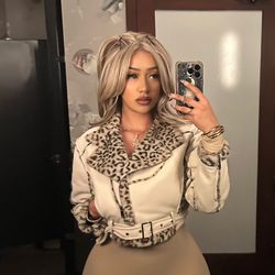 Cream Leopard Moto Jacket Small-large$60San Gabriel, CA