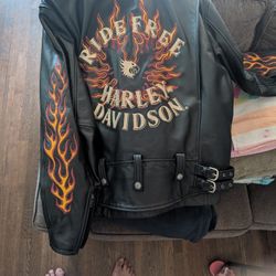 Harley Davidson Ride Free Flames Eagle Leather Motorcycle Jacket Mens XL$480Whittier, CA