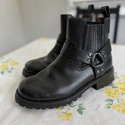 GBX Women’s Black Leather Biker Boots Harness Ankle Round Toe Size 7.5D$90Temple City, CA