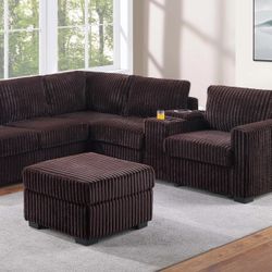 Beautiful 3-Pc Corduroy Sectional Sofa Couch With Storage Ottoman Plus USB Port $475Norwalk, CA