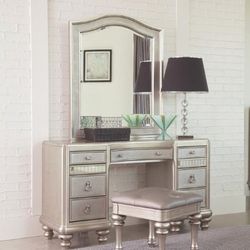 HIGH GLOSS WHITE FINISH 2 PIECE VANITY TABLE DESK CABINET HOLLYWOOD BULB MIRROR - TOCADOR$899Downey, CA