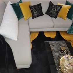 Gray Gold Modern Glass Velvet Dining Set $599Los Angeles, CA