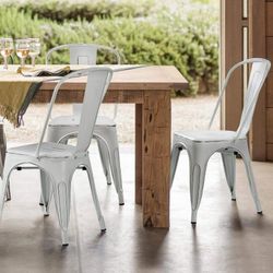 New Heavy Duty Set of 4 Metal Dining Chairs Stackable Indoor Industrial Vintage Chairs,Distressed White New in box MC906WTOD * Strong and Durable: Th$100La Mirada, CA