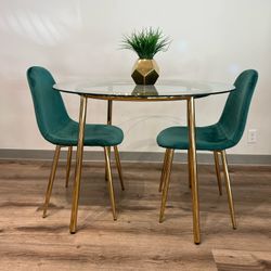 Emerald Green Gold Velvet Glass Dining Set For 2$290Los Angeles, CA
