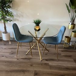 Blue Gold velvet Glass Dining Set For 2$290Los Angeles, CA