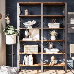 IRONCK Bookshelf Double Wide 6-Tier 76" H, Open Large Bookcase, Industrial Style Shelves, Wood and Metal Bookshelves for Home Office, Easy Assembly$120San Gabriel, CA