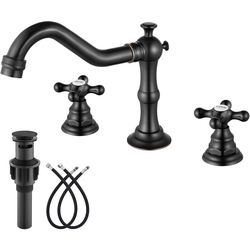 Bathroom Faucet 3 Hole 8 Inch Widespread Bathroom Sink Faucet 2 Cross Handles Vintage Lavatory Vanity Mixer Tap with Pop Up Drain, HOT Cold Label, Oil$55Lynwood, CA