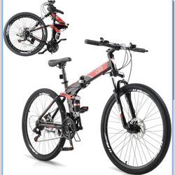 26 Inch Foldable Bikes for Adults 21 Speed Mountain Bike, Adult Bicycle with High Carbon Steel Frame, Full Suspension, Dual Disc Brake & Adjustable Er$130Carson, CA