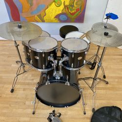 Silvertone Complete Drum Set 22 12 13 16 14” new quiet Cymbals Stands Hihat newThrone $375 Cash In Ontario 91762 good Condition Sticks Key cymbal bag$375Whittier, CA