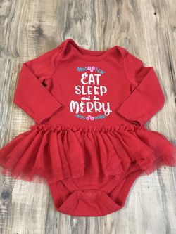 6/9m Cat & Jack L/S red Eat, Drink and Be Merry tutu onesie - $5!!$5Long Beach, CA