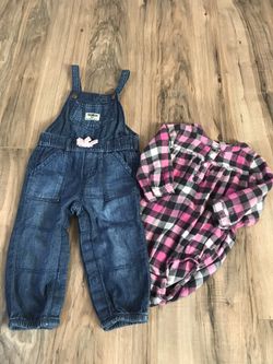 9m OshKosh L/S pink checkered flannel onesie + max things denim pant overalls - $10!!$10Long Beach, CA