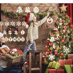40Pcs DIY Wooden Christmas Ornaments for Kids Christmas Craft Unfinished Wood Slices with Hole for Christmas Tree Hanging Decorations Wood Slices for $6El Monte, CA