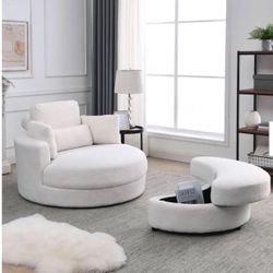 51 in. Swivel Accent Barrel Sofa Linen Fabric Lounge Club Big Round Chair with Storage Ottoman and Pillows, Beige$850Los Angeles, CA